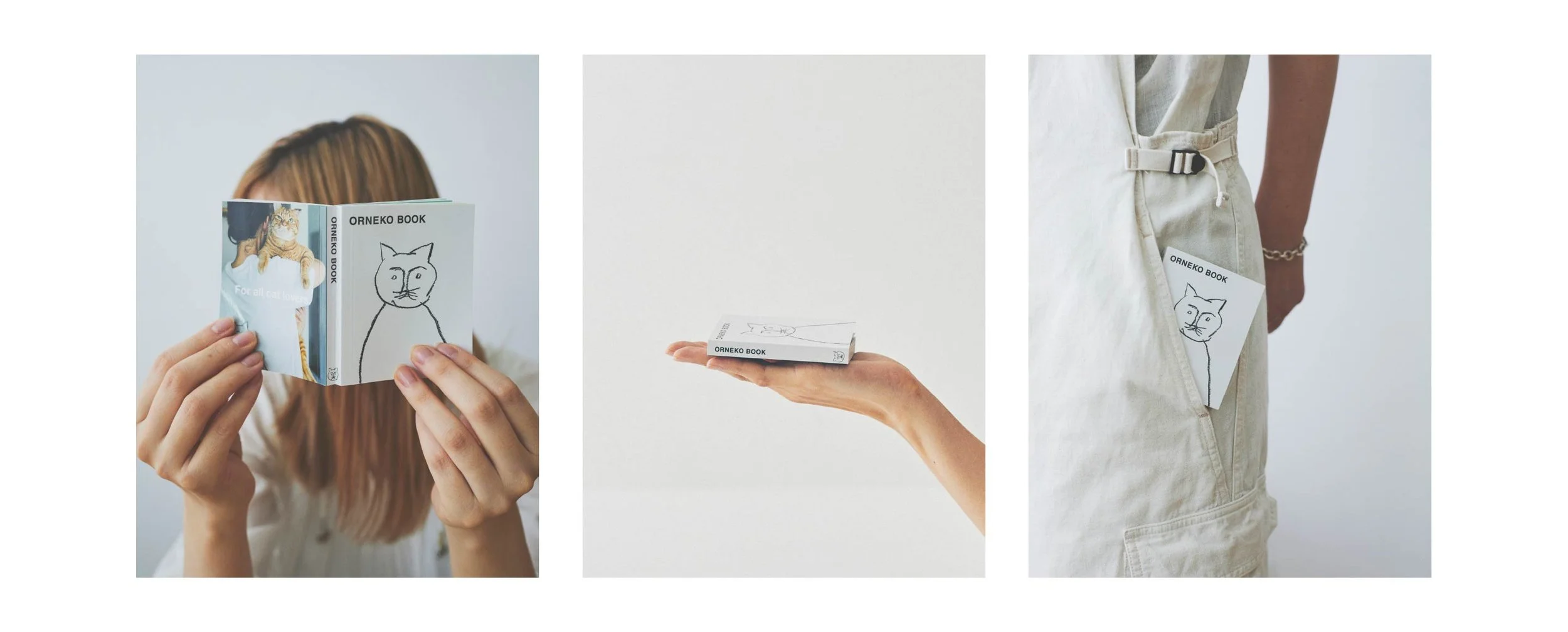 この本の特徴はなんといってもこのサイズ ! ネコにも見てほしくて(?!) 手のひらサイズの小さな仕上がりに。